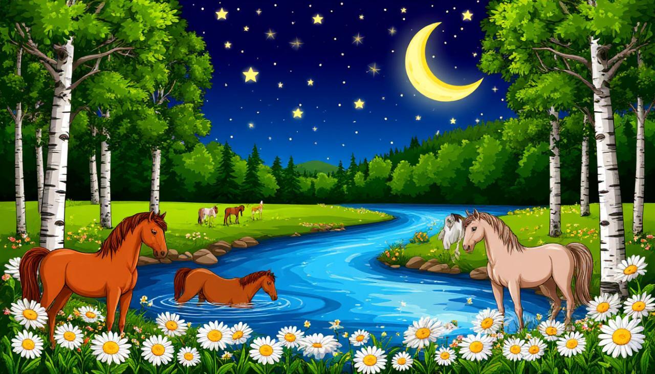 Видеопесня КОНИ ВОДУ ПЬЮТ ИЗ РЕЧКИ... смотреть, слушать, песня сгенерирована автором в нейросети: