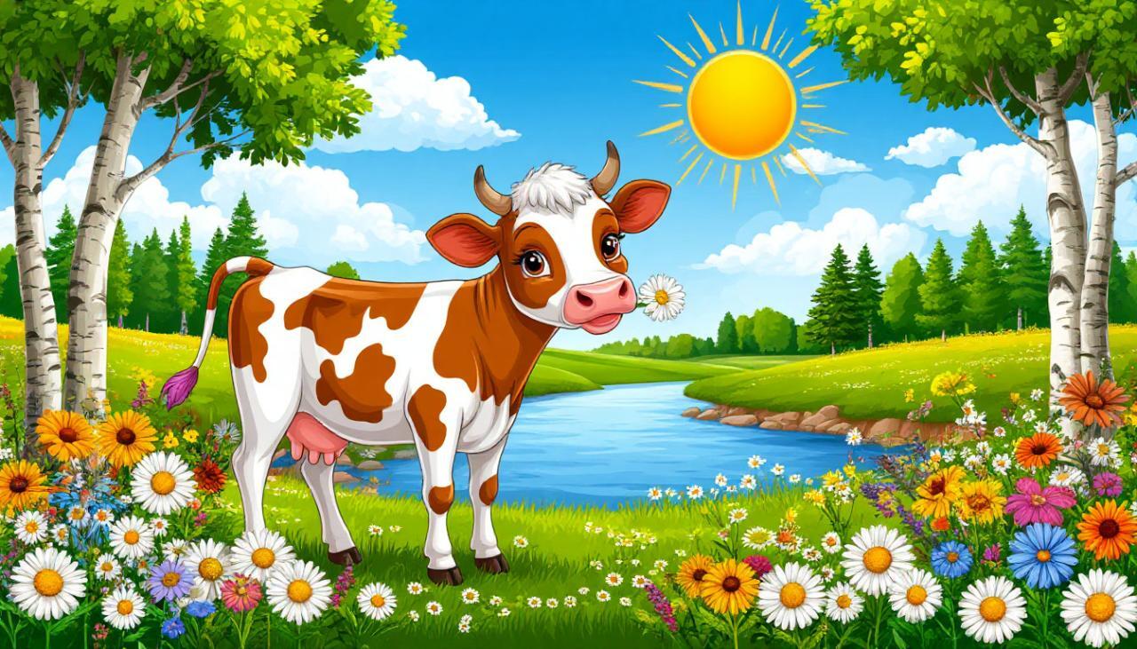 Видеопесню СТОИТ СРЕДЬ ЦВЕТОВ ТЕЛЁНОК... смотреть, слушать, песня сгенерирована автором в нейросети: