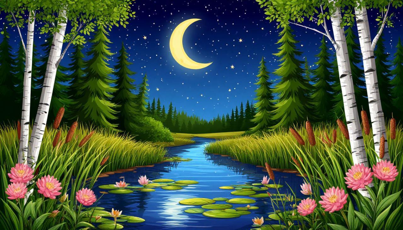 Видеопесню НАД УСНУВШЕЙ РЕЧКОЙ МЕСЯЦ...1 смотреть, слушать, песня сгенерирована автором в нейросети: