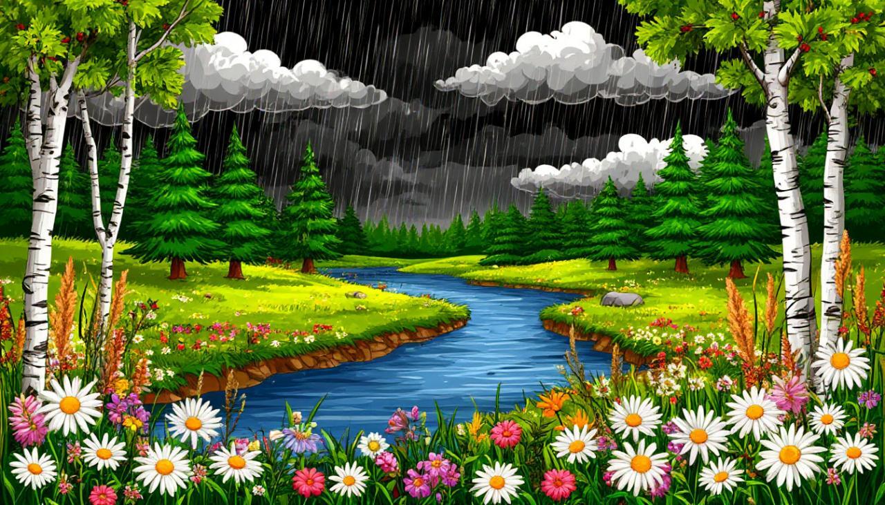 Дождик бежит по лугам.