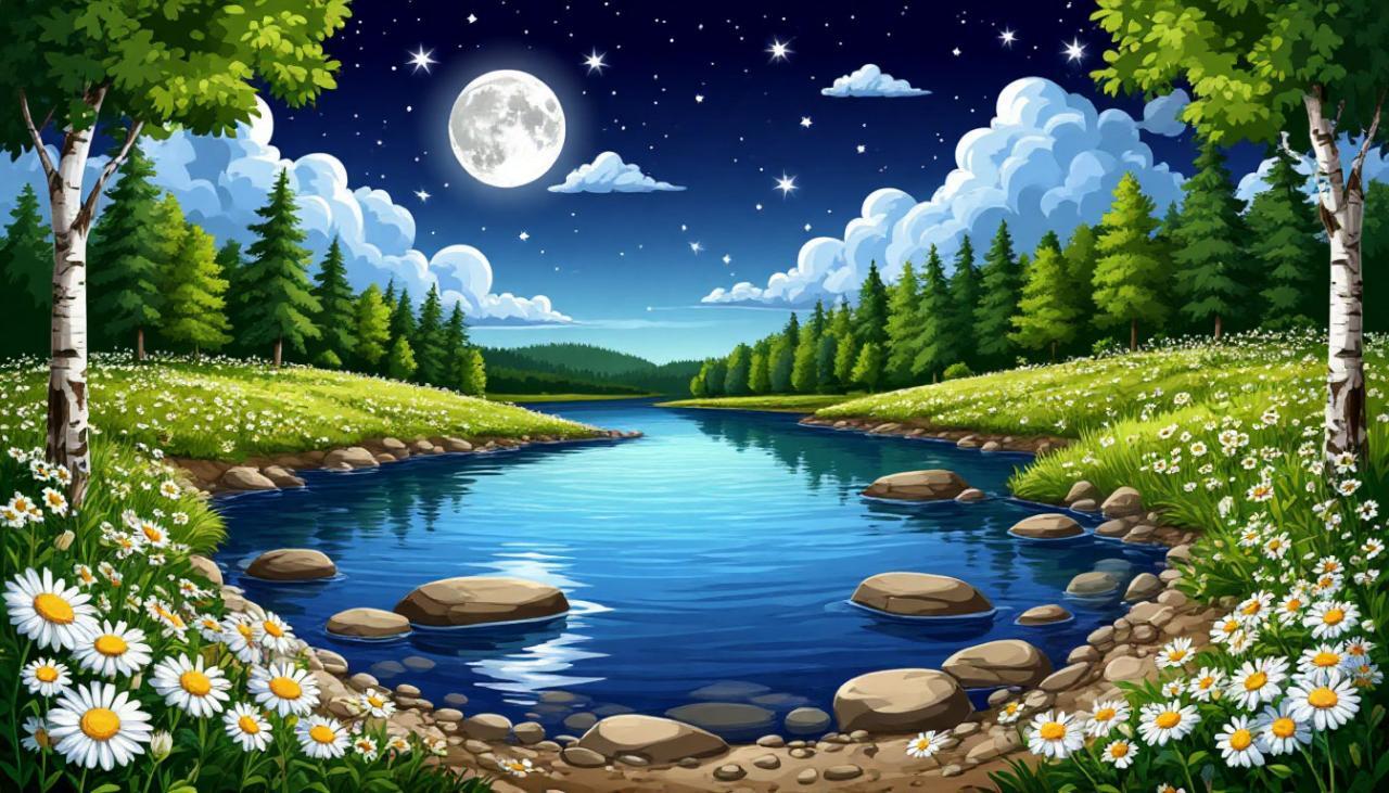 Луна зависла над рекой,