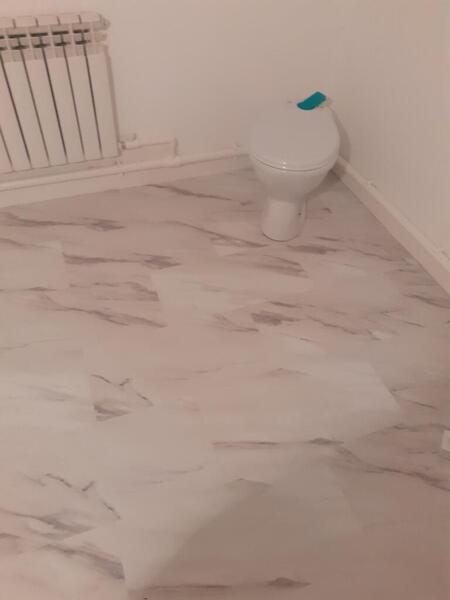Впервые в жизни ложил кварц виниловый ламинат. Подзаепался если честно. Отличие от обычного ламината, в том, что хрен ты его по одной плиточки положишь. Сначала ряд один выстраиваешь и тока потом защелкиваешь всем рядом целиком. И жопа самая крайний ряд загнать. Особенно если ванная комната большая, замаешся эту плитку загонять. Но я это сделал.
