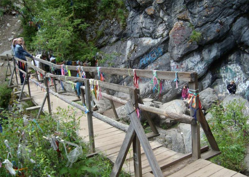 Полюбовавшись видами, мы отправились дальше, в путь, теперь в низ, в ущелье к речке Кынгырга. Тропа удобная, по склону. Вода кристально чистая и вкусная. Дальше весь путь по ущелью временами по мостикам, то на одну сторону то на другую. Виды открывающиеся с каждым шагом все лучше и лучше. В общем восторг и восхищение! По пути встречаются лиственницы с прикольными стволами, Сибирская хвойная пальма )