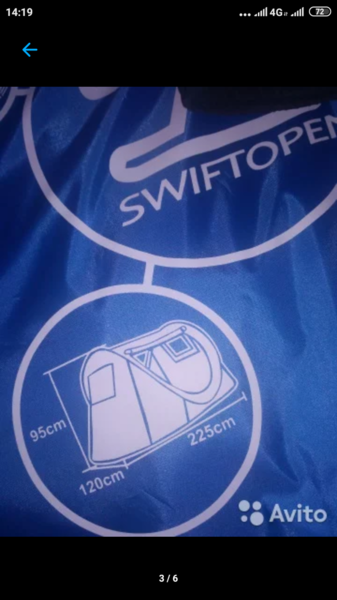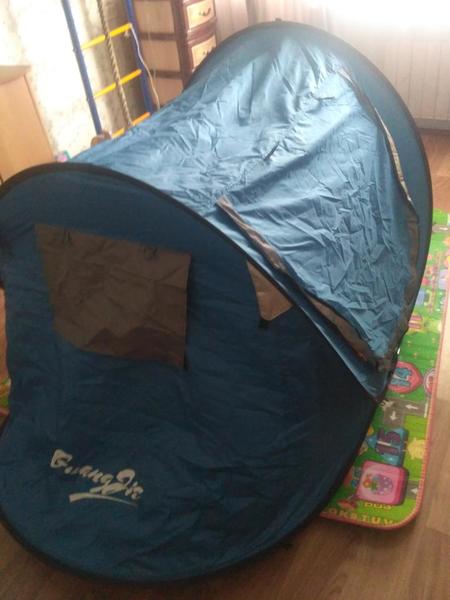 Наименование товара: Описание: Палатка туристическая автоматическая 2-х местная, новая. Раскладывается и устанавливается в течении 1 минуты, собирается 1,5 минуты. Размеры в разложенном состоянии: 210×120×90, в сложенном состоянии: 70×70×5. Цена: 2800 руб. Контакты: 89644028080