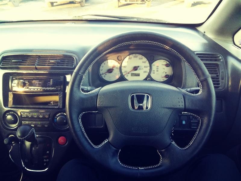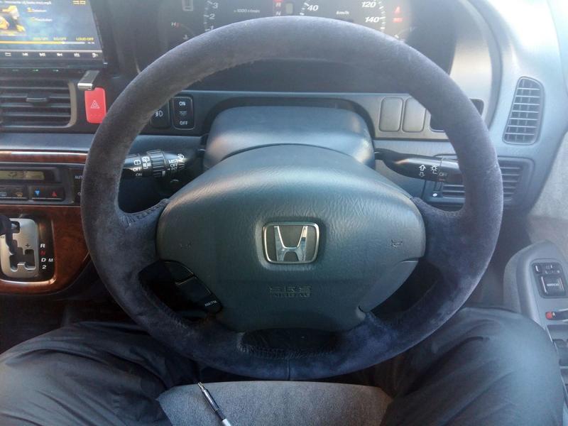 Очередная работа. Honda Odyssey, RA6, 2001. Материал - замша (темно-синяя), шов - двойная нить "Джинс". Было: Стало: