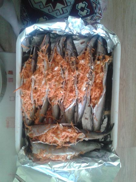сельдь с морковью и луком. морковь шинкуем на терке, лук режем, немного майонеза. все это прикрываем фольгой - чтоб не ссохлось. и в духовку. время обработки около 30 мин. время готовки примерно 40 мин.