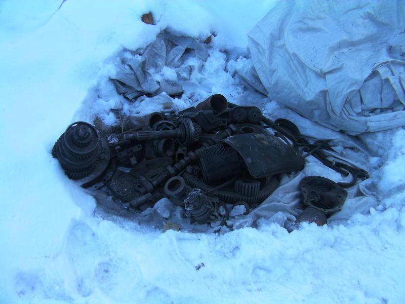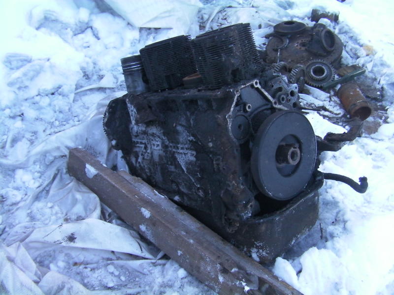 Сагаалганаар! уважаемые читатели и интересующиеся ремонтом автохлама. Проблема с куском вала решена наирадикальнейшим способом и не без участия ее величества Фортуны (прошу не путать с магазином). Как говорится "И дураку может повезти" (только, как правило, он этого не понимает), но здесь скорее другое "везет тем кто везет". Но отойдем от несколько философичных измышлений на предмет тонких материй и причинно-следственных связей приведших к желаемому результату и вернемся к измазанным мазутом, кое-где ржавым и для многих совершенно бесполезным и тем не менее таким нужным железякам. В результате активного поиска был установлен факт наличия автомобиля с идентичным двигателем в одной из организаций нашей столицы, правда данные были староваты. Обращение в эту организацию ничего не дало - про такую машину никто не знал - ответ у всех был прост - газонов у нас уже пятьсот лет как нет, а дизели видели только в ютубе и бурятхлебпроме. Тем не менее, произнеся пароль удалось пройти на охраняемую территорию (паролем были Ф.И.О. завгара), и с позволения того самого завгара, осмотреть все имевшиеся железяки. В результате искомое было обнаружено. Трудности поиска наводят на мысль о сверхсекретности технологий примененных в эксплуатации данного двигателя, хотя осмотр показал, что вся секретность заключалась видимо в обильной смазке движка как снутри так и снаружи, причем непонятно где больше, и судя по расцветке деталей, смазка осуществлялась исключительно отработкой. Вот и раскрыта секретность - вскрыт заговор маслопроизводящих компаний - незачем менять масло - можно использовать и отработку - надо лишь поливать ею мотор и снаружи, во избежание его порчи! Довольно слов и так уже секрет раскрыт, пора показать в картинках правдивость слов о не блестящем золоте. Приобретенное богатство по всем правилам хранится замороженным в снегу, чтобы не проквасилось и не заветрилось Потеплело, и значит надо нести все в более надежное место. Открываем и видим настоящий клад (людей с нормальной психикой прошу отодвинуться от экранов) А это самая главная часть добычи 300-килограммовый блок, трендового черного колора На радостях, был сооружен ларец для всех "богатств" в виде стеллажа метр на два. Все заботливо уложено Вместе со всеми деталюшками и деталищами был приобретен и тнвд, а также три форсунки. Ну что, как говорится, будем жить.