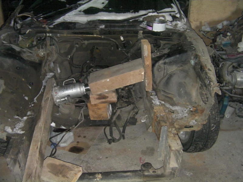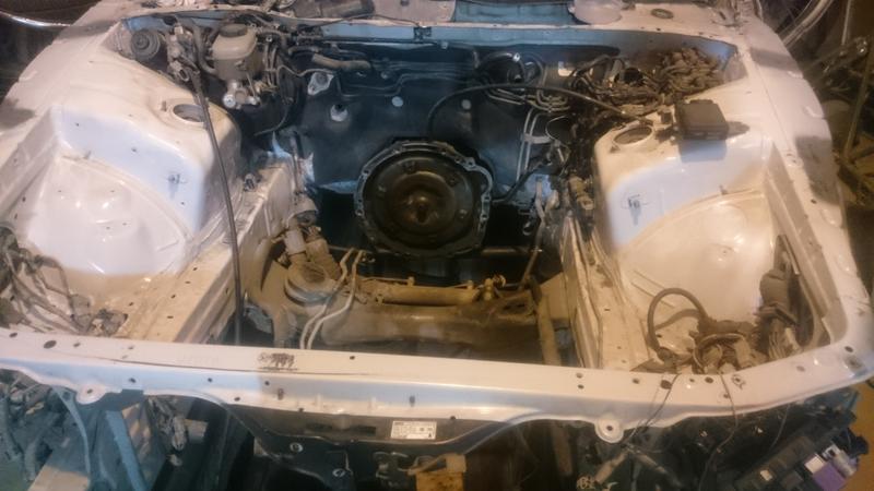 Здравствуйте все интересующиеся оживлением хлама и превращением его в движущуюся кучу все того же хлама. На дворе морозы и поэтому самое время приподнять интерес к вышеуказанному процессу, посредством демонстрации некоторого количества занятных картинок Наступил и вовсю пошагал уж Новый, 2018-й год, а марк из хлама до сих пор еще не завелся. Причин этому можно найти много и многие из них будут даже весьма и весьма убедительные, но признаюсь честно - лень, всему голова лень. Поэтому марк выглядит сейчас так А в гараже очередное чудище. Это прилично уезженный 90-й марк. В Японии такую машину даже в металлолом бы не взяли так как металла меньше чем шпакли. Двигатель - покрытый множеством легенд 1G страдал перегревами и для решения этой проблемы с него сняли голову и насыпали в цилиндры снега. Год был засушливый вот и треснула штукатурка на крыше Позор тем кто считает что перегрев лечится помпами, проклами и шлифовками. Побольше снега прямо в цилиндры и наверняка при таком подходе мотор вообще не будет нагреваться Поскольку 3 литра не получается оживить, начинать надо с меньшего. Попробуем реанимировать 2 литра. Для начала вынимаем движитель и находим причину перегревов. И все-таки это классика - белое и черное, снег и мазут жидкость уходила через заднюю заглушку блока. синие пятна - это следы засохшего тосола. Есть версия, что в период сухого закона потребляли тосол. Так вот, не делайте этого, в тосоле слишком много красителей, даже мазут не может с ними справиться Так как масштабность определяется размерами заменяемой детали, то решать вопрос надо не заменой заглушки, а заменой блока целиком. А вот и блок на подмену, запылился весь в ожидании своего часа Пока готовится движитель, надо заняться подготовкой места жительства этого движителя. Нынешнее состояние подкапотного пространства полностью подходит под определение ветхое и аварийное. Правый лонжерон и брызговик Жим на левом лонжероне Брызговик левого лонжерона В дополнение к картинкам - рамки радиатора или в простонародье телевизора - не было. При попытке подправить стакан стойки, чтобы получить нормальный развал, все помялось еще сильнее и даже кое-где оторвалось Так как в нашей стране идет программа ликвидации ветхого и аварийного жилья, то не будем отставать. Ликвидируем все ветхое и аварийное, а именно, обрезаем лонжероны: правый до стакана, а левый по самое самое, то есть почти до моторного щита Продолжение далее