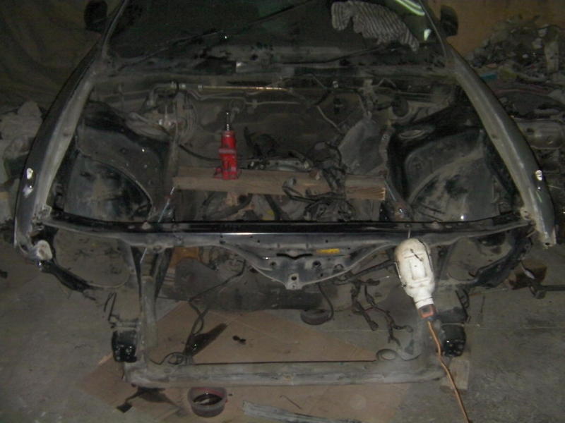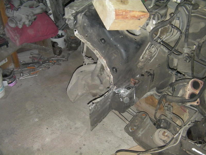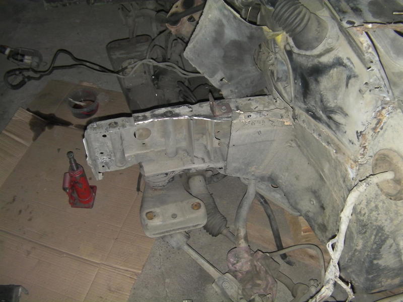 Маленькое продолжение Для придания марку внешности, позволяющей с гордостью глядеть на автомобили меньше классом, взамен ветхих железяк прилеплен передок от так называемого распила. Железка подготовлена и ожидает вживления Вот так фигурно пришлось вычертить болгаркой, чтобы не высверливать сварные точки Согласно утвержденных строительных норм и правил, реконструкция жилья для мотора осуществляется с использованием сертифицированных строительных материалов, в данном случае так называемая резьбовая штанга и кусок доски от опалубки Шовчик будет аккуратненький, на уровне лучших клиник пластической хирургии. Здесь даже незаметен разрез Ну вот и все. Передок на месте, осталось пройтись сваркой. Наброшенные крылья показали, что точки крепления совпали