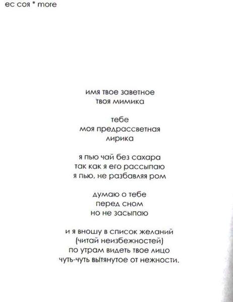 @Ефросиньюшка мне нравится!) тоже в свое время баловался пародией на него, даже на музыку наложили слова, но запись корявая и мне не понравилась, поэтому выкладывать не буду а вот текст сейчас попробую воспроизвести: Садясь в поезд краснорск-улан-удэ Глажу себя по бороде Твои Глаза вдали Превели Все корабли на мели Я иду к вам по своей любви Воде