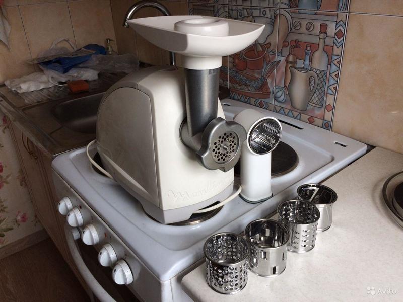 Описание: Продам недорого (покупали за 8000 р.) мясорубку Moulinex в отличном состоянии . Производство Франция !!! Имеется дополнительно приставка-соковыжималка, и для набивки колбас.