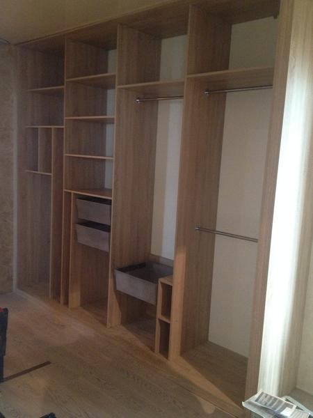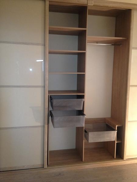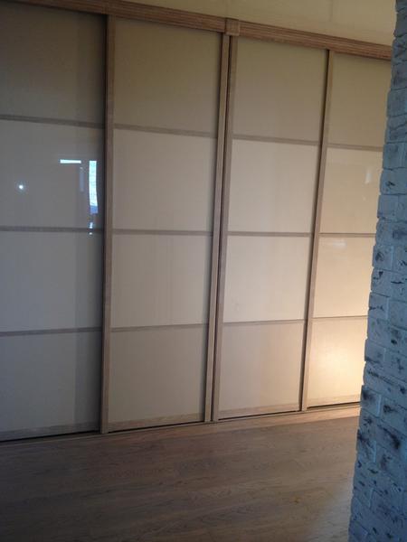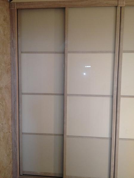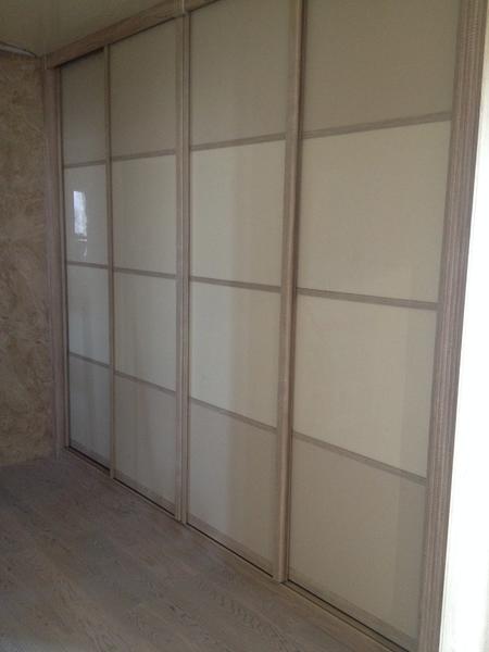 5. Шкаф-купе. Вставки дверей: искусственная кожа и пластик. Обрамление шкафа: пилястры под классику.