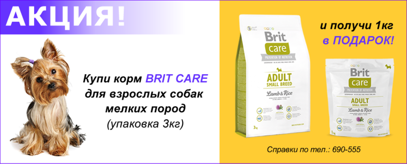 Справки по тел.: 690-555. Продаётся корм для щенков супер-премиум класса: BRIT CARE PUPPY ALL BREED LAMB & RICE, 12КГ Цена: 5 230 руб. 2 615 руб. Причина уценки: заводской срок хранения заканчивается в апреле. P.S.: Упаковка в порядке! Доставка по г. Улан-Удэ! ========================================================= Полнорационный гипоаллергенный корм с ягненком и рисом для щенков и молодых собак всех пород (4 недели – 12 месяцев). Состав: Мука из мяса ягненка (45%), рис (30%), куриный жир (консервирован токоферолами), сушеное яблоко, рыбий жир лососевых рыб (3%), натуральные ароматизаторы, пивные дрожжи, гидролизованные панцири ракообразных (источник глюкозамина, (320 мг/кг), хрящевой экстракт (источник хондроитина, 190 мг/кг), маннан-олигосахариды (180 мг/кг), экстракт из трав и фруктов (розмарин, гвоздика, цитрусовые, куркума, 180 мг/кг), фрукто-олигосахариды (120 мг/кг), юкка Шидигера (yucca schidigera) (120 мг/кг), инулин (110 мг/кг), молочный чертополох (90 мг/кг). Гарантированный анализ: Cырой белок 32%, сырой жир 18%, влага 10%, сырая зола 7,7%, сырая клетчатка 2,5%, кальций 1,8%, фосфор 1,3%. Питательные добавки на 1 кг: Витамин A (E672) 23 000 МЕ, витамин D3 (E671) 1 800 МЕ, витамин Е (α-токоферол) (3a700) 600 мг, витамин C (E300) 300 мг, холина хлорид 700 мг, биотин 0,75 мг, витамин В1 1,2 мг, витамин В2 4,5 мг, ниацинамид (3a315) 15 мг, пантотенат кальция 12 мг, витамин В6 (3a831) 1,2 мг, фолиевая кислота (3a316) 0,6 мг, витамин В12 0,05 мг, цинк (E6) 100 мг, железо (E1) 90 мг, марганец (E5) 45 мг, йод (E2) 0,8 мг, медь (E4) 18 мг, селен (3b8.10) 0,3 мг. Энергетическая ценность 4 000 ккал/кг, Омега-3: 0,42%, Омега-6: 2,10%. Рекомендации по кормлению: Для щенков рекомендованное ежедневное количество корма, указанное в таблице кормления, нужно разделить на 3-5 равных порций и давать в течение дня. Корм нужно давать сухим или слегка увлажненным водой комнатной температуры. Если Вы даете корм Brit Care в первый раз, смешайте небольшое количество с привычным кормом и постепенно увеличивайте количество корма Brit Care в течение 7 дней. Ежедневное количество корма может отличаться в зависимости от условий окружающей среды, уровня активности и возраста собаки. У собаки всегда должен быть доступ к питьевой воде. Таблица кормления: Вес взрослой собаки (кг) Возраст (мес.) 5 10 15 20 25 30 40 50 60 70 80 90< Ежедневное потребление (г) 1-3 50 85 115 140 150 170 180 210 230 260 260 300 3-4 75 120 160 180 Junior Large Breed 4-6 75 130 175 220 6-12 70 120 170 210 12< Adult Small Breed Adult Medium Breed