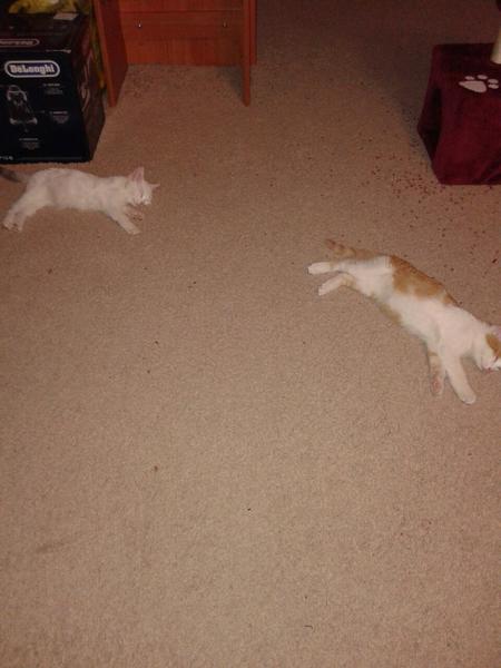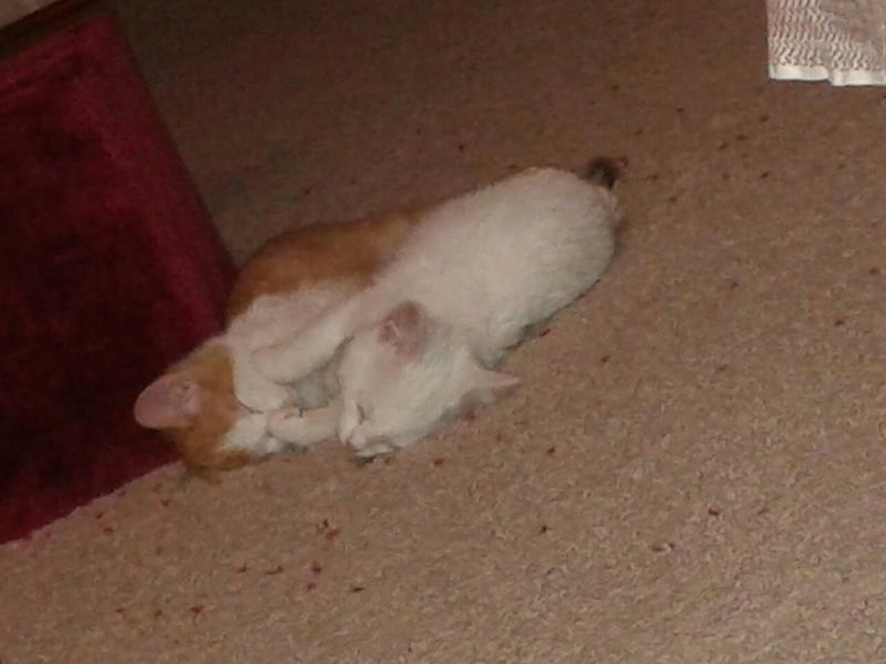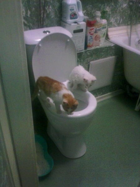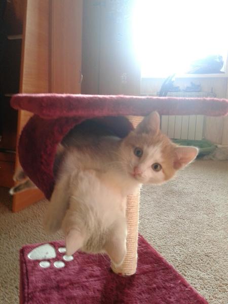 Подобрали 21 сентября двух симпатичных котят. Вначале шугались нас и прятались. С самого первого дня как появились ходят в лоток и едят ВСЁ что дают. Никакого кошачьего запаха в доме нет. Зовем их Сосиска и Кабачок. Сосиска - беленькая девочка, Кабачок - рыжий мальчик. Игривые, сейчас немного ещё побаиваются: на руках не хотят сидеть. Мы их очень любим, но понимаем, что двоих мы не потянем. Сын привык к Сосиске. Отдаем со слезами на глазах Кабачка. Судя по интересу к унитазу, можно приручить к нему. Забыл написать телефоны: 571-571, 575-801