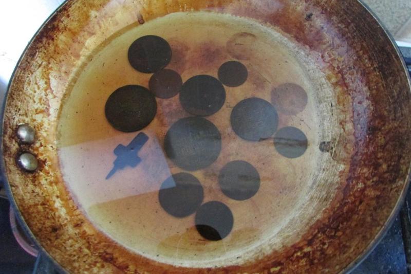 почистил пирожки))) кстати сковородка такая чистая от монет стала, все фото монет не стал скидывать. Как картошку фри пожарил)))