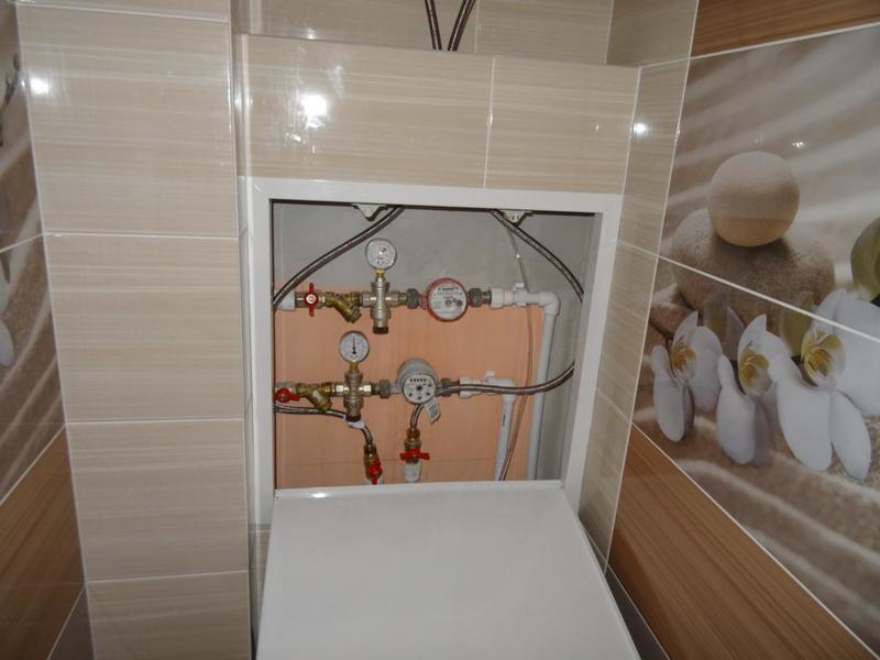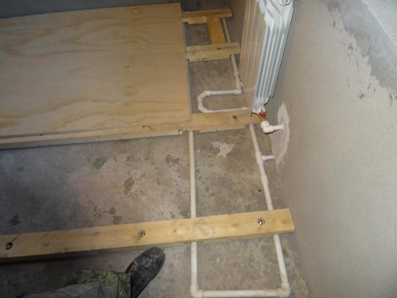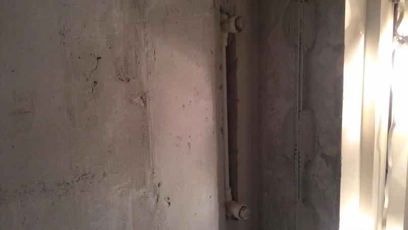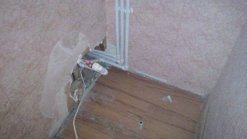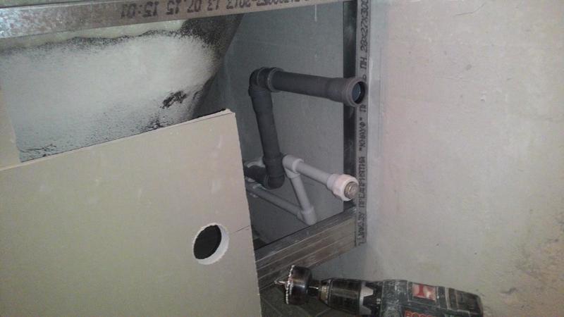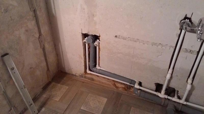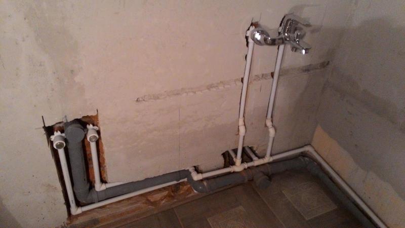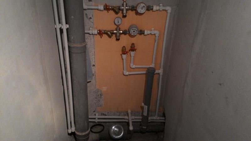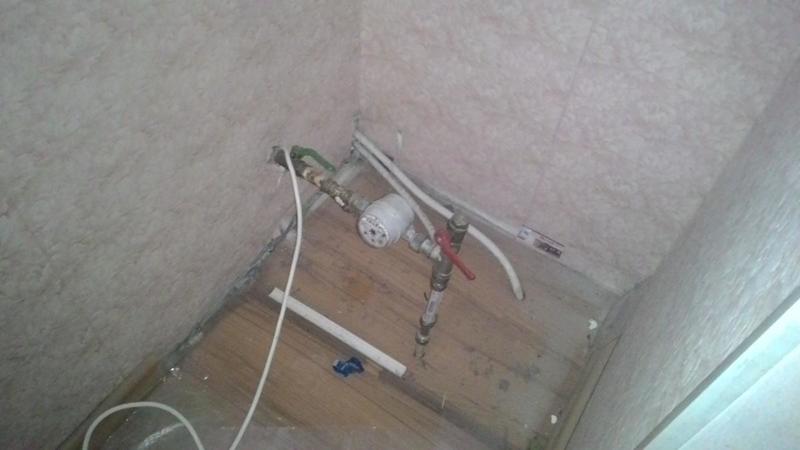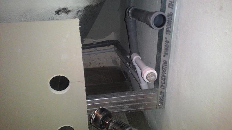 Сейчас работаю на новом объекте Это раздельный санузел в двухкомнатной квартире. Дом 135 серии и в этом доме стояки холодного и горячего водоснабжения должны быть в кухне и ванной, но в этом доме почему то сделано все по другому, а именно стояк холодной воды проходит в кухне и через кран и тройник, переходит в металлопластик и подведен к раковине на кухне и под полом идет в ванную. А стояк горячей воды проходит в ванной и также металлопластиком идет на гребенку в ванну и под полом идет на раковину в кухню. За коробом проходит стояк хол.воды А это горячая вода Все это безобразие решил исправить, трубы заменил на полипропилен и горячую с ванны и холодную с кухни провел по потолку, вообщем смотрите на фотографии А вот новая гребенка в ванной комнате На последнем фото сделана канализационная труба 32, для слива со стиральной машины и пп труба с хол.водой для стир.машины, кран будет поставлен после монтажа экрана для ванны.