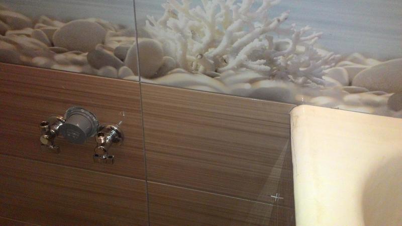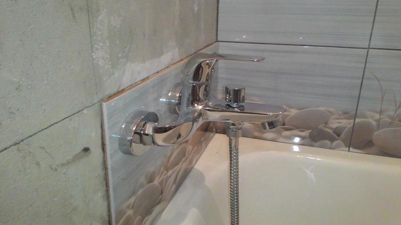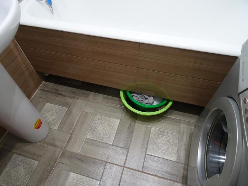 Обратите внимание что ванна, то есть сами отливы, которые из горизонтального положения ныряют в вертикальное положение установлены в плотную к стене. Сама ванна длинной 150 см, а стена вдоль которой установлена ванна длинной 136 см. Чтобы ванна влезла в это расстояние, я ее конечно отрезал по длине. Клиентке предлагал установить акриловую ванну, были в аквасити подходящие по размеру ванны, но отказалась, мотивируя что они не устойчивые и их вес тела может не выдержать.