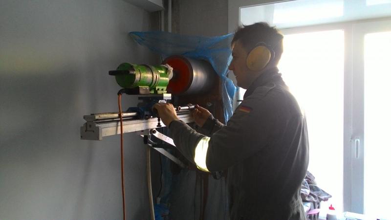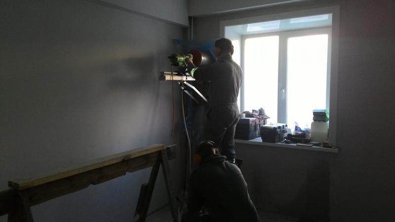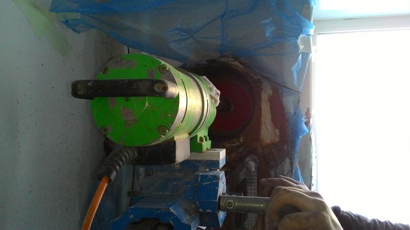 Чтобы "отдохнуть" от ремонта ванных комнат занимаюсь ремонтом квартир, в основном делаю только у старых клиентов В зеленой комнате в зимнее время очень жарко, так как под ней элеваторный узел. Отключение батареи не помогало, и решили убрать радиатор и поставить рекупиратор. Дом старый и стены почти метр толщиной, для высверливания отверстия под вентиляцию вызвали фирму, которая занимается алмазным бурением.