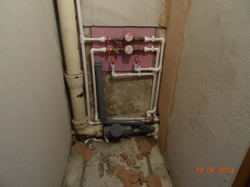Понятно, полотенчик стоит возле раковины значит, неудобное место для стояка горячей воды и полотенчика. Я в этой ситуации стояк гор.воды переношу на противоположную стену, полотенчик можно поставить над стиралкой или ванной, кому как нравиться. Бывает что и стояк холодной воды проходит рядом с со стояком горячей воды и вся это красота портит вид лицевой части стены и ограничивает ширину раковины.Ну а стояк хол.воды я переношу в туалет. Вообщем на фото все видно. Как сказал Tank перекрытие лучше пройти и соединение сделать у соседей, но бывает что соседи сделали ремонт или просто не пускают ( жаба их давит что вы ремонт делаете)