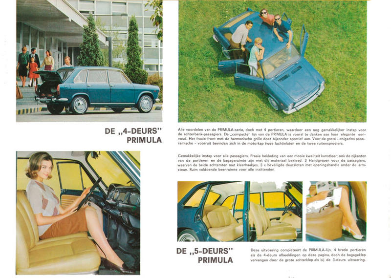 Еще одна модель-игрушка-Римейк выпускавшаяся на 2 заводах "АТЭ1" и "Прогресс" была модель Итальянского автомобиля - Аутобианчи Примула - Autobianchi Primula, или если более правильно на Русском языке - Аутобьянки Примула. Прототип модели представлял собой автомобиль класса Мини, в некоторых источниках даже супер мини, с трех или пятидверным кузовом "фастбек" двух или четырех дверном кузове "хетчбек" и двухдверное "купе". Автомобиль выпускался с 1964 по 1970 год и был первым автомобилем с передним приводом в группе компаний "FIAT" с поперечно расположенным двигателем и речным рулевым управлением (и это все почти за 3 года до старта более консервативного Фиат 124 ставшего в последствии автомобилем ВАЗ-2101). автомобиль оснащался рядным 4-х цилиндровым двигателем объемом 1,2 литра мощностью 65 л/с но позднее автомобиль стали оснащать двигателем от FIAT-124 мощностью в 60 л/с, вариант купе оснащался двигателем в 1.4 литра и мощностью 70 л/с. Максимальная скорость 135 км/ч. На автомобиль ставили дисковые тормоза на всех колесах. Коробка четырех ступенчатая. При этом автомобиль имел рессорную заднюю подвеску с телескопическими амортизаторами, а передняя подвеска была на одной поперечной рессоре с телескопическими амортизаторами, таким образом, пружин в подвеске машины не было. Автомобиль занял второе место в конкурсе европейский автомобиль года в 1965 году. Всего было выпущено 74 858 экз. Ну ладно, с прототипом разобрались, переходим к модельке. как и в случае с Мазерати Мистраль купе, металлический вариант машинки выпускал завод "АТЭ-1" пластиковый завод игрушек "Прогресс". Разница между машинками были минимальны. Машинки изготавливаемые на этих заводах, представляли собой трехдверный вариант кузова "фастбек". Форма кузова почти точно передает пропорции прототипа, и представляет собой довольно симпатичный автомобильчик, кузов которого решен в смеси остатков былого аэростиля и только-только входящего в моду кузовов с плоскими панелями, машинка очень напоминает автомобили той эпохи выпускаемые в Бритиш Мотор Корпорейшен (Англия). Римейк модели сделан с модели компании Mebetoys, вернее было закуплено оборудование для производства машинки у этой компании , когда та сняла ее с производства. Масштаб модельки - 1/43. У модельки есть подвижные детали - двери и третья дверь (дверь багажника). Отдельными деталями сделаны бампера и решетка радиатора, (заодно с передним бампером) на металлическом варианте отдельными деталями сделаны непрозрачные фары. Остальное - задние фонари, вентиляционные отверстия, эмблемы, шильдики, ручки дверей отлиты вместе с кузовом. Интересно, что на металлическом варианте шильдик на крышке багажника пишется кириллицей "Примула", в тоже время на пластиковом варианте остался оригинальный и более красивый шильдик "Primula". На металлическом варианте нет шильдика "Autobianchi" на носовой части кузова, но он есть на пластиковом варианте. Все эти шильдики были на металлическом варианте, но в установочной (экспериментальной) партии. Салон так-же сделан незамысловато, два ряда сидений, сиденья простые без рисунка, имитации панели приборов нет, отдельной деталью сделан руль, дверные карты отлиты на двери. Салон сделан единой деталью с багажным отсеком. Подвеска на металлических вариантах подрессоренная, на ранних моделях ход мягкий, на пластиковом варианте - прижимается с
