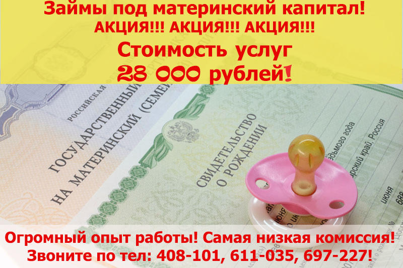 1. Выдаем займы под материнский капитал на строительство или покупку дома! Комиссия от 15 000 рублей! Звоните: 244-035, 679-927, 611-035, 408-101!