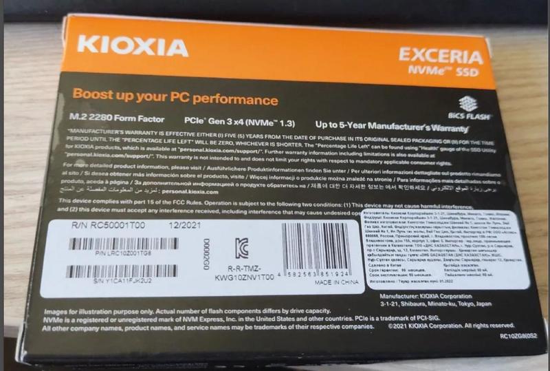 Новый SSD M2 Kioxia (Toshiba) 1Tb.