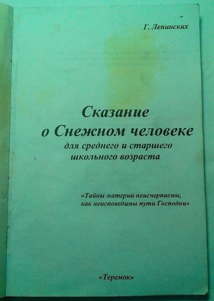 Наименование товара: Г.М. Лепинских. Снежный человек Описание: Ищу книгу Г.М. Лепинских. Снежный человек Улан-Удэ. Теремок.. 2005г.110с..мягкий переплет, обычный формат. Цена: 500 руб. Контакты: