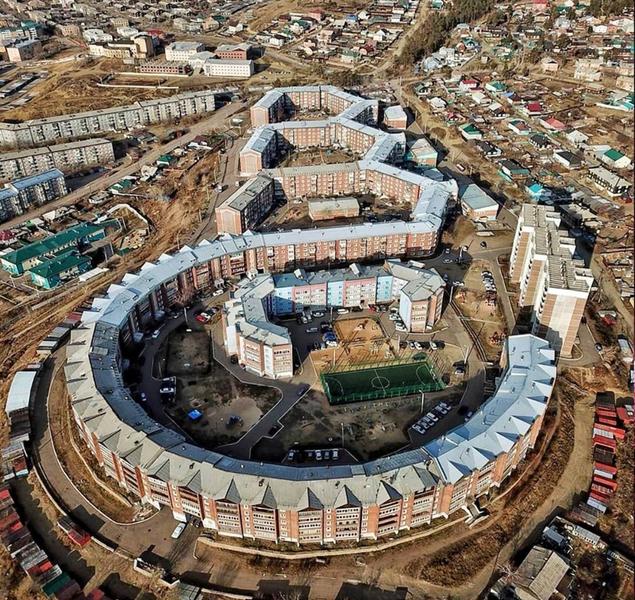 Пентагон — самая длинная пятиэтажка в России. Построена в 1993 году, Улан-Удэ. https://t.me/Life90x/3108