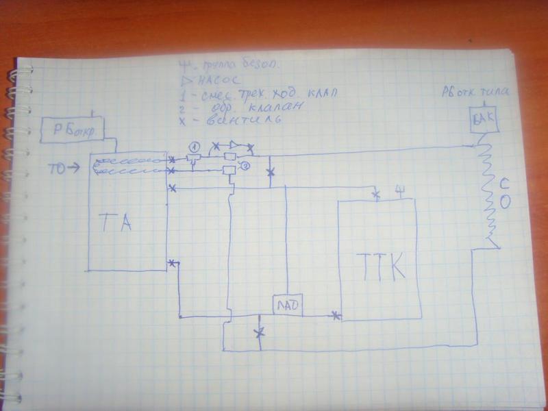 запустил всю систему, сразу ни каких ладоматов и термоваров, стоит обычный вентиль задвижка, ВНИМАНИЕ вопрос : почему чем выше температура тем дольше вся система нагревается, вся система ТТК - ТА, и ТА - СО, работают и принудительно и естественно единственное, что при естественном малый круг не работает, т.к естественное вкл. только при разницы темп. в 20 гр. ТА нагревал только до 80 гр, но проще нагреть до 70 , эти 10 гр даются сложно, температура в ТА внизу и вверху практически одинакова разница в два три градуса и то после приостановки выделения тепла, а так одинакова, температура в нижней точке ТА