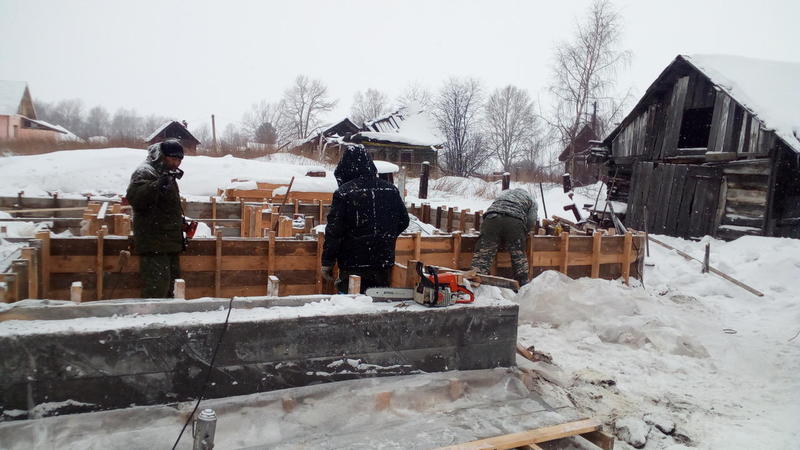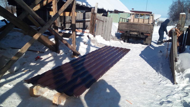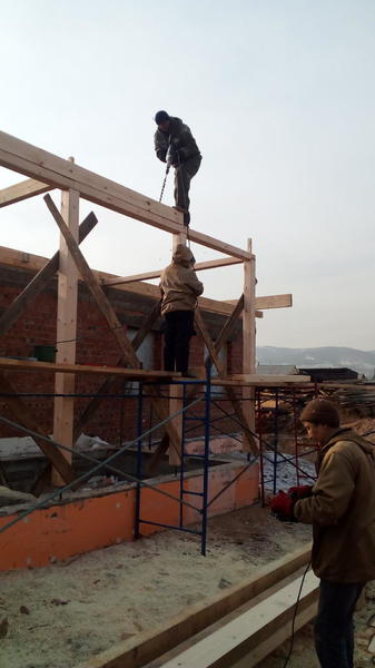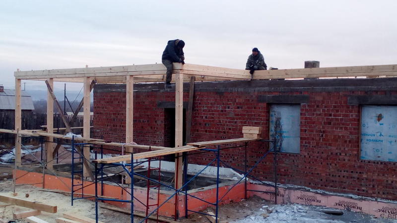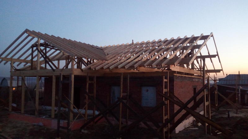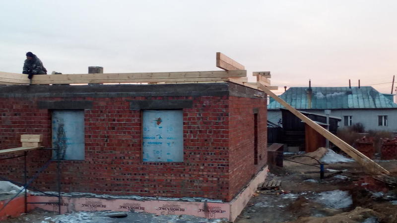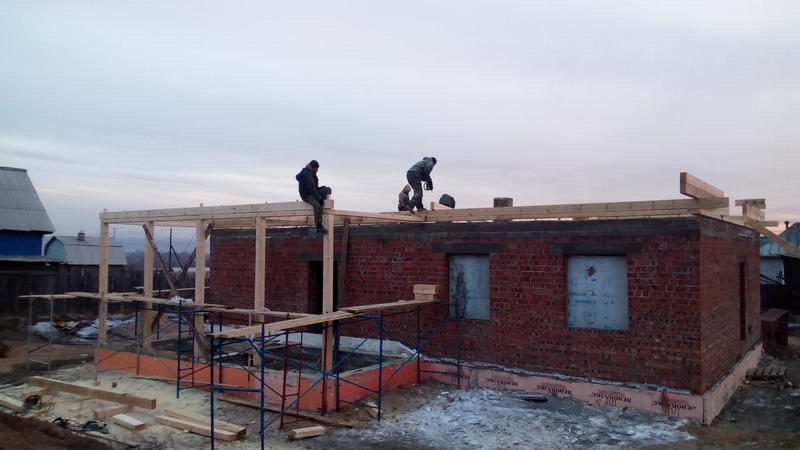 Дом построен. Правда, уже выкладывал в другой теме. А сейчас начали новую работу - крыша на кирпичном доме. Для начала разобрали опалубку с фундамента веранды, который мы делали осенью. Пиломатериалы на крышу нами были заготовлены заранее.
