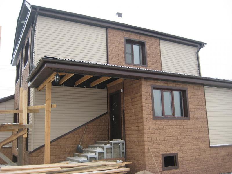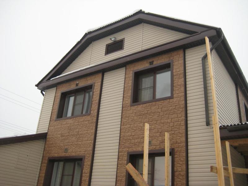 Вот покрыли дом (коробка уже была...). Кровля Нулайн. Все бы ничего, но доска промороженная напрочь... (поставка заказчика), сверлили почти под каждый гвоздь или саморез... А вот тут фасадами развлекаемся, есть где развернуться творчеству, так сказать... Конечно, не развлекаемся, а работаем весьма серьезно...
