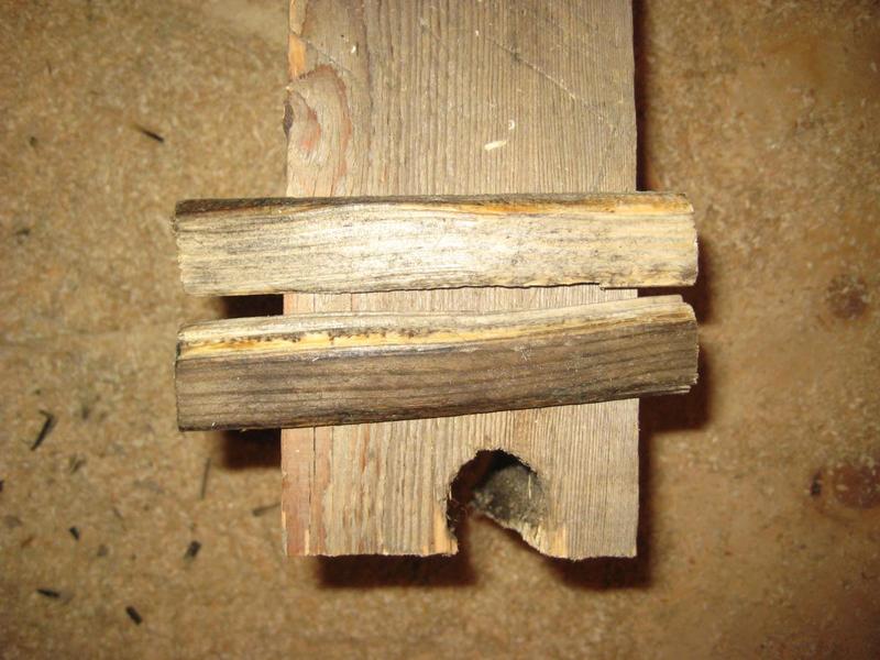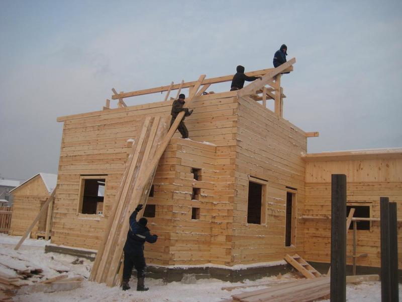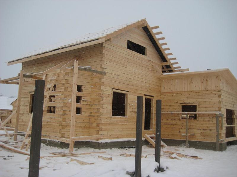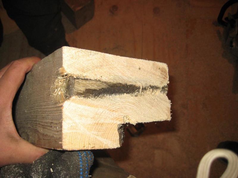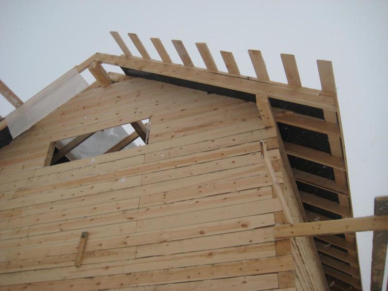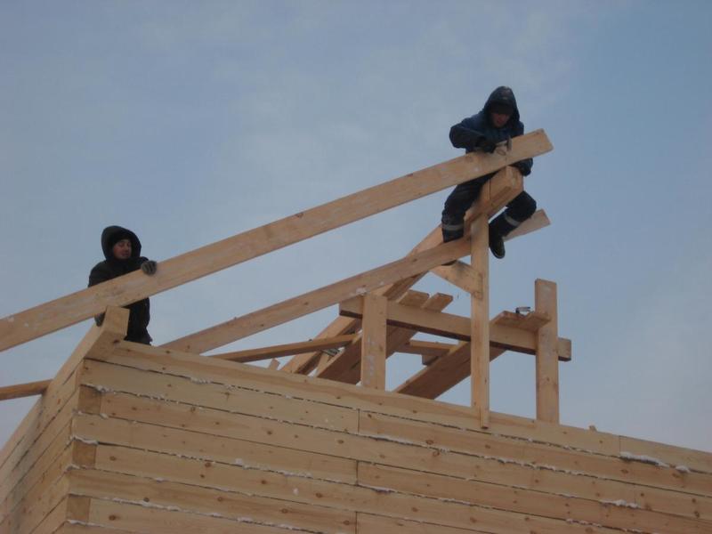 Сейчас делаем крышу на готовой коробке. Для установки выносных стропильных пар (дом - полуторник), чтобы увеличить свесы кровли, передвигали верхний венец. Ленточная пакля лежит не по всей плоскости бруса (есть пустоты), сверление происходило через паклю и в швах лежала стружка (там, где брус не прилегал к нижнему бруса). Зато весь брус отстроган и снаружи и изнутри...