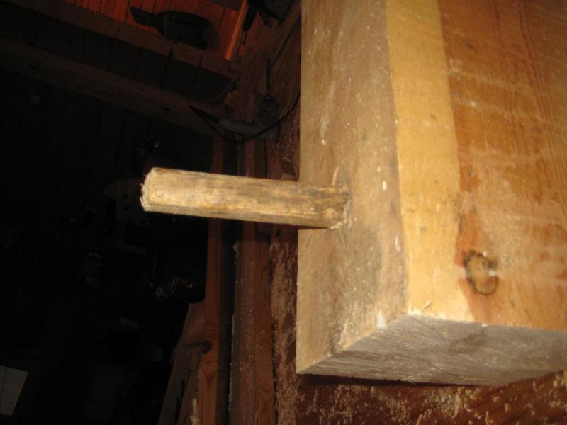 Есть мнение, что такие очень туго заколоченные нагеля напитывают влагу и брус зависает на них. Отверстие при усыхании бруса не увеличивается, а наоборот, уменьшается в диаметре.