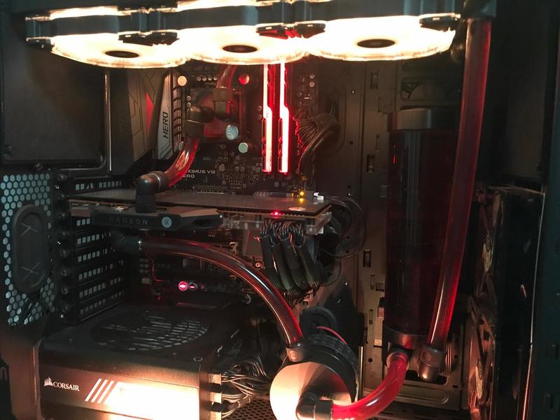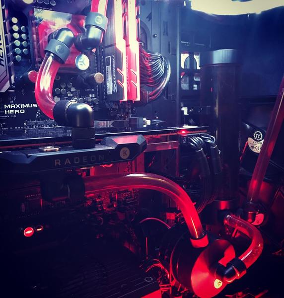 2. Производительный и очень тихий компьютер с системой водяного охлаждения. Спокойно тянет игры в 4к разрешении, на высоких настройках. Процессор: Intel core i7-6700K Материнская плата: Asus MAXIMUS Hero VIII Оперативная память: DDR4 G.Skill Trident Z RGB 16GB 3200 MHz. Видеокарта: Gigabyte Radeon RX VEGA 64 8G Блок питания: Corsair RM850x Корпус: Thermaltake Suppressor F31 Накопители: SSD PLEXTOR PX-128M5S - 128 ГБ SSHD Seagate ST2000DX001 - 2 ТБ - 2 шт. Система охлаждения: Комплект вентиляторов Corsair HD120 3 шт. Вентиляторы Thermatake Pure 12-2 шт. Система водяного охлаждения от словенского производителя EK WaterBlocks в составе: Резервуар: EK-RES X3 250 с набором крепления Водоблок ЦП: EK-Supremacy EVO - Nickel с набором креплений под сокеты 2011, АМ3, АМ4. Водяная помпа: EK-XTOP Revo D5 PWM с набором крепления Радиатор: EK-CoolStream XE 360 Водоблок видеокарты: EK-FC Radeon Vega - Nickel и EK-FC Radeon Vega Backplate - Black Любые проверки и тесты. Отвечу на все вопросы касательно компьютера. Видео производительности системы: Цена: 130 000 руб Контакты: 89021610071 Фото: