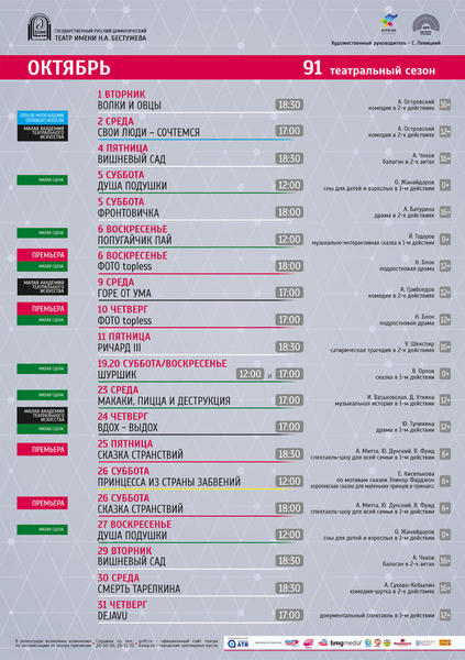 6 октября состоится премьера спектакля для подростков «Фото topless» по пьесе российского драматурга Натальи Блок. По сюжету Артем и Кира нравятся друг другу. Они находятся на том этапе взросления, когда начинают чувствовать, что симпатичны противоположному полу, когда ощущают в себе вибрации любви. Но друзья подбивают Артема на глупость, и в результате девочка втравлена в некрасивую ситуацию. Это актуальная история о первой любви, разочаровании, о взрослении и о границах дозволенного, о том, какие последствия может иметь один необдуманный поступок. Здесь поднимается сложная тема травли (буллинга), которая сегодня касается практически каждого подростка. И театр предлагает посмотреть на обстоятельства как со стороны тех, кто травит, так и со стороны жертвы. Однако, несмотря на злободневность, спектакль в постановке Елены Ненашевой получился добрым и жизнеутверждающим. Премьера состоится на Малой сцене театра, билеты уже в продаже