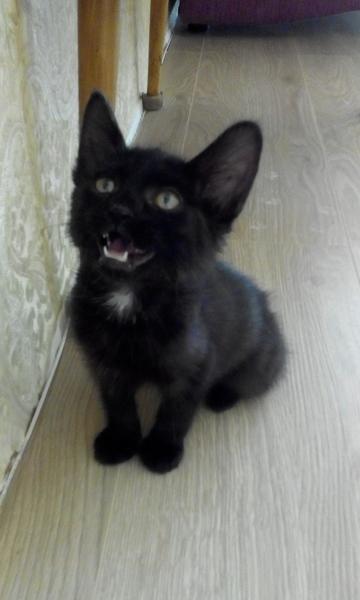 Отдается в добрые руки котёнок. Мальчик, 2 месяца. Черный с белой манишкой. Чистоплотный, приучен к лотку. Звонить по телефону (89021) 69-72-35.