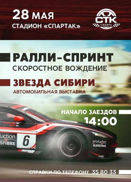 Дорогие друзья! Спортивно-технический клуб Сибирь приглашает Вас посетить уникальное для нашего города мероприятие - RallySprint 2015! РалиСпринт в данном формате представлен как скоростное фигурное вождение на время. Принять участие в гонках и проверить свое мастерство вождения может каждый! Для этого необходимо приехать в день соревнований 13 сентября 2015 года к 9:00 утра на площадку ТЦ Домашний, ритейл-парка Пионер и пройти квалификационные заезды. По результатам квалификации будут отобраны 8 или 16 участников по каждому из 3 классов - передний задний и полный привод. Зрителей же мы приглашаем к 14:00, когда начнутся соревновательные заезды. В программе так же авто и мото шоу, выступление танцевальных коллективов, лазер-шоу, фаер-шоу. Ну и конечно же море музыки, красивых девушек, прокаченых авто и адреналина. Приходите! Будет интересно! Подробности https://vk.com/stksibir