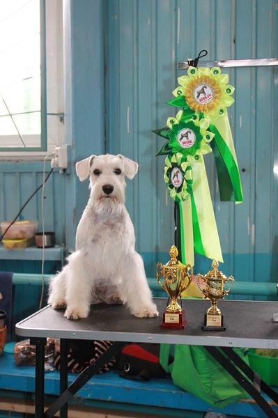 Всем привет!!! У нас вот такие новости!!! 27мая в Чите, Барса с Ларисой закрыли Юного Чемпиона России!!! 28мая в Чите получили свой первый взрослый САС!!! 4июня наш Улан-Удэнский Цвергодесант принял участие в Монопородной выставке Цвергшнауцеров в Иркутске!!! Барса КЧК- кандидат в чемпионы Национального Клуба Породы!!! Лучшая в своем классе!!! Жюли КЧК- кандидат в чемпионы Национального Клуба Породы!!! Лучшая в своем классе!!! Сэм- наша звезда!!! Стал лучшим представителем породы в своем окрасе!!! Первым среди белых из 10 белых цвергов!!! Поздравляем Римму и Сэма!!! Вот они лучшие из лучших Цвергшнауцеров нашего города!!! Они это доказали на деле!!!