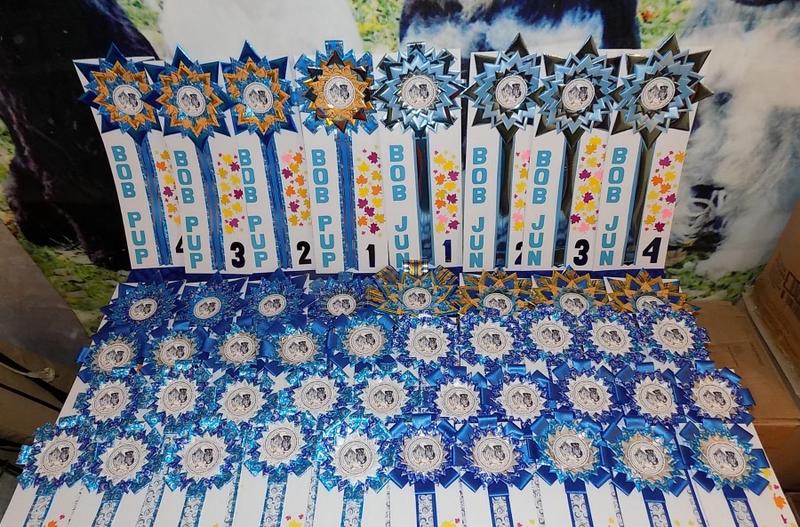 Фото после выставки! Можно и лохматенькими Викториас Скилл Лесли Блэк Слиперс / дома просто Барса Лучший Щенок Породы!!! 3 место в Бэсте Щенков!!! поздравляем Ларису и Михаила!!! Викториас Скилл Сатти Лайф оф Джой (Свет радости)/ дома просто Вольта приняла участие 21 августа!!! Эта малышка родилась у нас дома, дочь нашей Тоси. Мы очень за нее болели!!! В конкуренции с Читинским бэбиком она получила оценку Большая перспектива и титул Лучший бэбик породы!!! В Бэсте Бэбиков благодаря своей юной хозяйке получила 5 место !!! Поздравляем Камиллу и ее маму Ирину!!! Вот такие награды привезли папе!