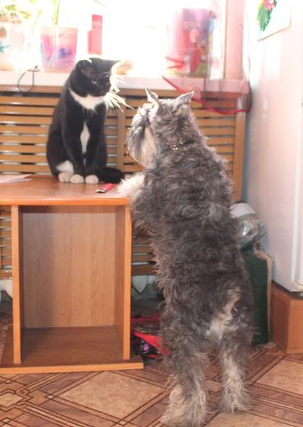 16. Думаю любителям породы будет интересно. Цверги какие они... Рассмотрим типы в породе цвергшнауцер. В истории породы был этап резкого фенотипического расхождения внутрипородных типов. В течение нескольких десятилетий обычным было выделять два - "европейский" и "американский". Принято считать, что поголовье первого типа, так же называемого "тип шнауцера" (что более верно терминологически), было распространено в Западной, а позднее и в Восточной Европе. Здесь цвергов относят ко второй классификационной группе FCI, секция пинчеров и шнауцеров. ( обратите внимание все собы высокопереды, четкая линия верха спускающаяся с верху в низ. Украшающая шерсть на лапах, грудь подстрижена, совершенно по другому.) Так же прочно утвердилось мнение, что миниатюрных шнауцеров второго типа культивируют в США и Канаде, где на них разработан стандарт AKC, относящий породу к группе терьеров (классификация пород в США вообще сильно отличается от таковой в Европе). Существует еще и стандарт Кинологического Клуба Великобритании, не входящего в FCI, который мы здесь рассматривать не будем, т.к. он принципиально от стандарта, утвержденного FCI не отличается, хоть и имеет более размытые формулировки, свойственные всем английским стандартам вообще. Интересно отметить, что в отстаивании своего взгляда на породу более настойчив Американский Клуб, который не признает титулы стран Европы и, на данный момент, тормозит подписание с FCI договора о двусторонних отношениях, настаивая на выгодных для себя условиях. На выставках в США почетным считался класс, называющийся "рожденный в Америке", в котором экспонировалось наибольшее число участников. FCI же учитывает титул, полученный на территории североамериканских стран и, следовательно, негласно признает и их стандарты. Нельзя не отметить сильного влияния АКС на работу заводчиков стран Латинской Америки с развитой кинологической системой - Аргентины и Бразилии, номинально входящих в FCI. Зачастую, собаки их разведения смотрятся более утрированными, чем рожденные в США. (американский тип цвергшнауцера)