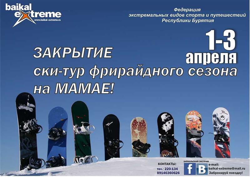 4. Приглашаем всех наших друзей и гостей "Бурятской слободы" достойно отметить окончательное закрытие ски-тур-фрирайдного сезона 2015-2016 на Мамае! Подробности и программу можно посмотреть в группах https://www.facebook.com/groups/ksvlavinayandex.ru/ https://vk.com/club55795056