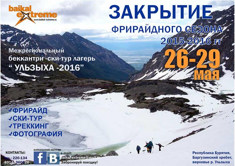 2. "Спокойно , товарищ, спокойно... У на ещё всё впереди..." ..слова из знаменитой песни Юрия Визбора как нельзя кстати подходят к предстоящей череде крайних в этом ски-тур-фрирайдном сезоне 2015-2016 наших вылазок-закрытий в горы...... Бог, как известно, Троицу любит... так и у нас, магическая цифра "три", как в сказке, как нельзя точно определяет точное количество оставшихся в этом сезоне мероприятий... Итак, перечислим их... ...три ски-тур-бекантри лагеря в трёх разных горных районах Восточной Сибири ... ...в районе Большого Саяна на Мунку-Сардык (30 апреля - 3 мая, открытие/закрытие ски-тур-фрирайдного сезона в Восточных Саянах)...... на пике Тальцинском (6-9 мая, Закрытие ски-тур сезона на Хамар-Дабане)... ... и в районе Баргузинских Альп (26-29 мая, окончательное закрытие ски-тур-фрирайдного сезона 2015-2016 в Прибайкалье)... Так что, скучать и печалиться нам совершенно некогда.. необычно прохладная весна, комфортные температуры, отличный весенний снег с подложкой, уникальные места и споты, куда зимой было трудно добраться, всё это "богатство" в виде крутых склонов, сложных кулуаров и заманчивых цирков и ледников ожидает камуса и канты ски-туристов и фрирайдеров!!!! Присоединяйтесь.... и вливайтесь в нашу дружную команду "Байкальского экстрима", команду истинных любителей ски-тура и фрирайда в Прибайкалье!