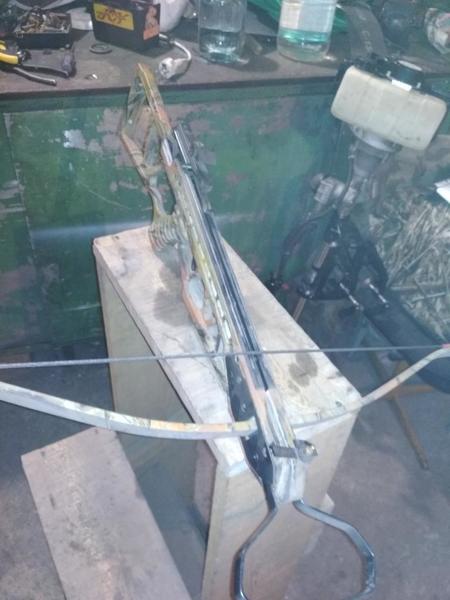 Наименование товара: арбалет Описание: Настрел 50 выстрелов. Отлично подходит для охоты с лабаза и на засидках. Сила незнаю какая. Но доску 50мм пробивает насквозь. Тетива стальной трос изготовлен на заводе. В довес несколько стрел и заготовок для них. Безшумный. Цена:5000 руб. Торг. Контакты: 89833398768