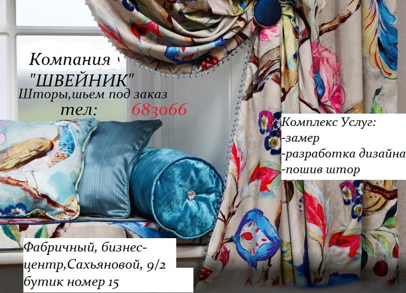 1. КОМПАНИЯ "ШвейниК" Предлагает услуги пошива под заказ.Продаем шторы(ламбрикен из микровуали,вуали),подушки,одеяла,тюли, комплекты штор,детские одеяла под выписку(красиво оформленные и теплые), ПРИЕМЛЕМЫЕ ЦЕНЫ! Находимся по адресу: Фабричный, бизнес-центр,Сахьяновой, 9/2 бутик номер 15, тел.683066-Людмила или 89644089926. или по всем вопросам сюда: http://vk.com/id329345150