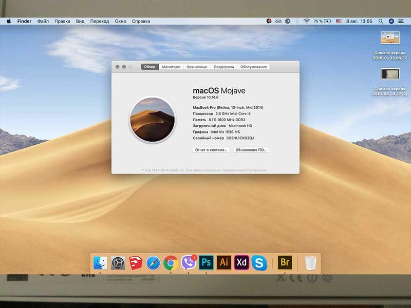 Наименование товара: Apple MacBook Pro 13"8g (2014) 256Gb / RUS.keyboar Описание: Продам MacBook Pro 13" 2014-го года, 256Gb SSD, 8gb. Полный комплект. Продаю свой mac, я не перекуп! Mac, в состоянии на 5, все грани идеально ровные. (Без коцек) Стекло дисплея в очень хорошем состоянии. Любые доп. фото в личку. Mac живой, и даже очень! За mac не стыдно, клавиатура, трек-пад, порты, зарядное, все в идеале. И да, mac, РСТ, клавиатура с Русскими и английскими символами. Если действительно намерены приобрести, пишите/звоните (Telegram / Viber) Возможен торг. Звоните обязательно договоримся. Цена: руб. 55000 Контакты: 89021658029