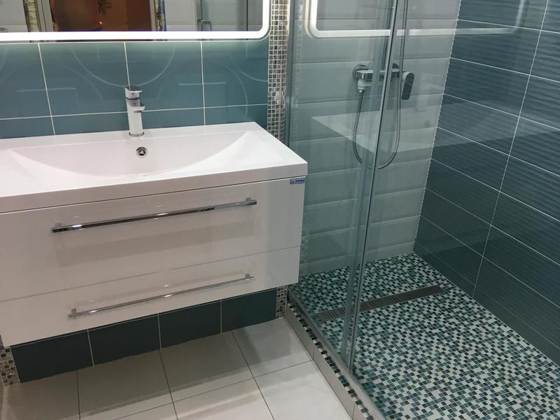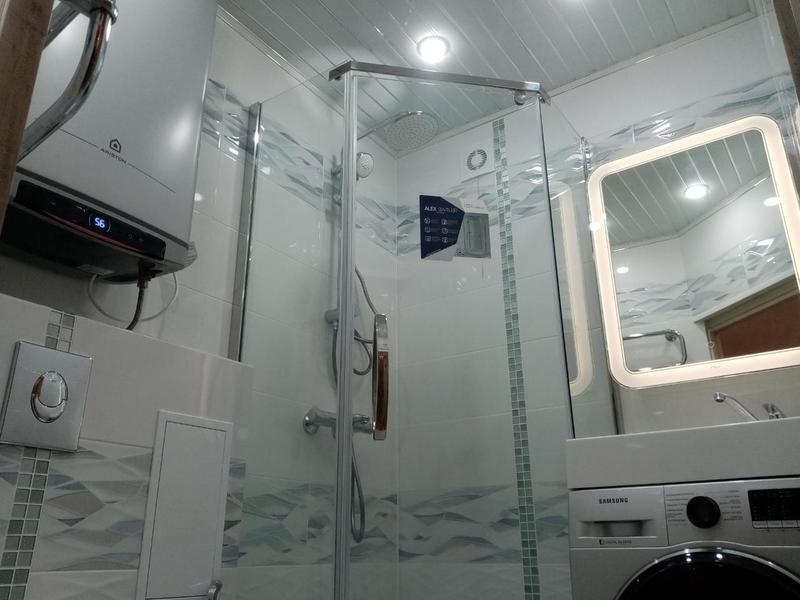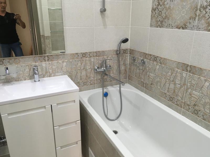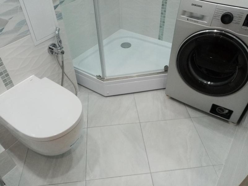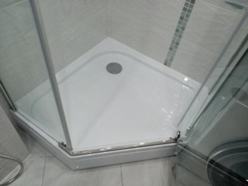 Закончил очередной объект. Стены затерты цементной затиркой, а полы и душевой поддон эпоксидной затиркой. В ванной осталось сделать монтаж доборов, просчитались при покупке, а покупали в Иркутске в ТЦ Леруа, ждемс доставки. Цены низкие, как сказали клиенты дверная ручка здесь стоит 1800, а в Леруа купили 700 или 800 руб.